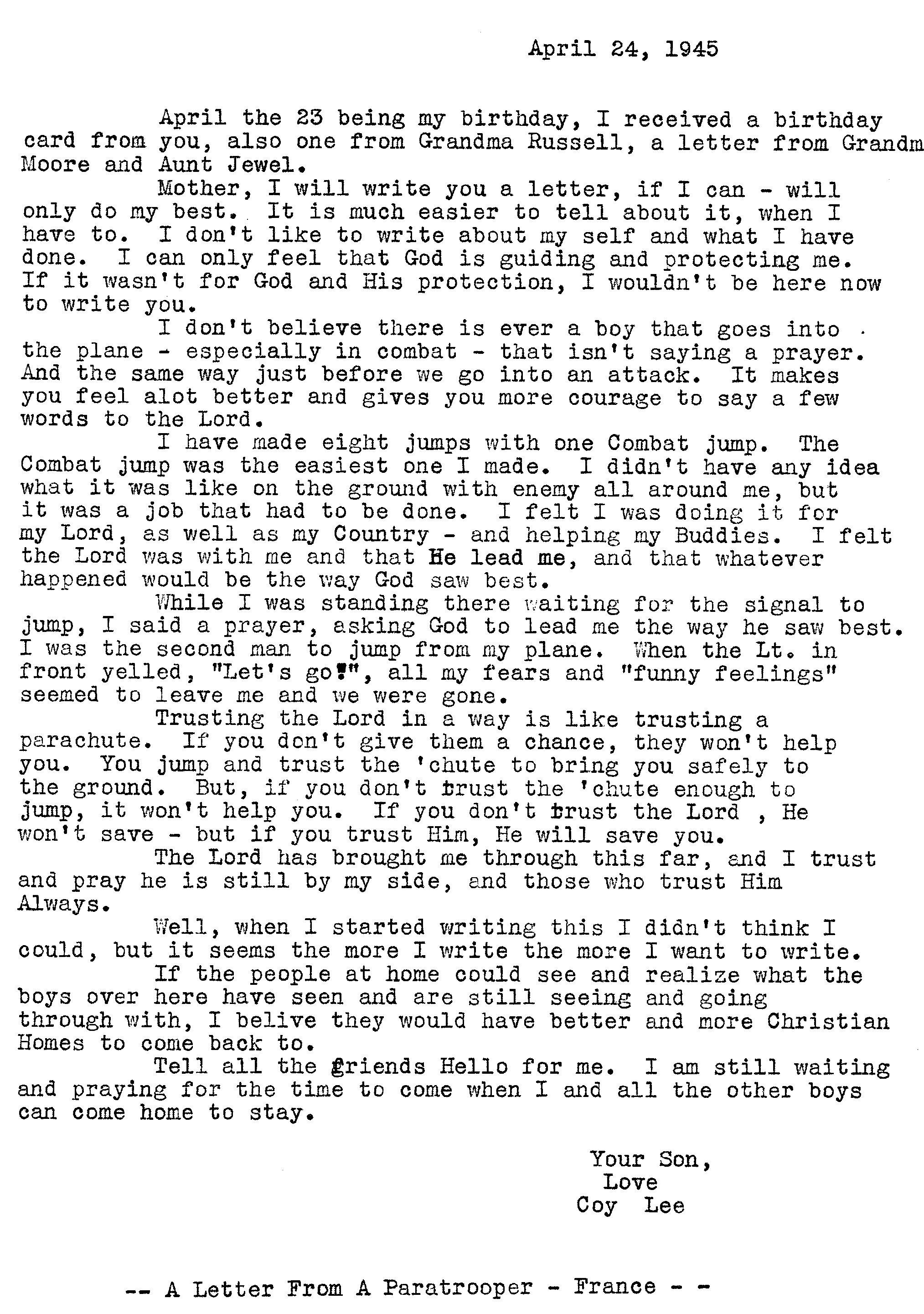 letter, if I can - will only do my best. It is much easier to tell about it,