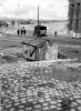 a disused cannon is ignored by passers-by, location as yet unidentified