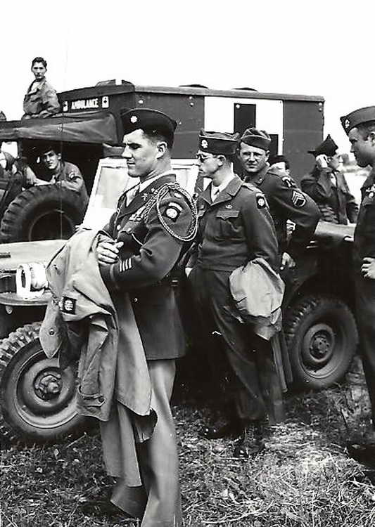 adjusts his camera while Cpl Knoch tends the jacket of a 508th