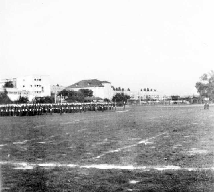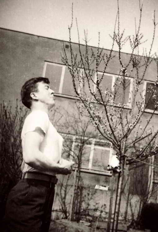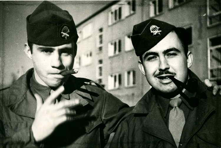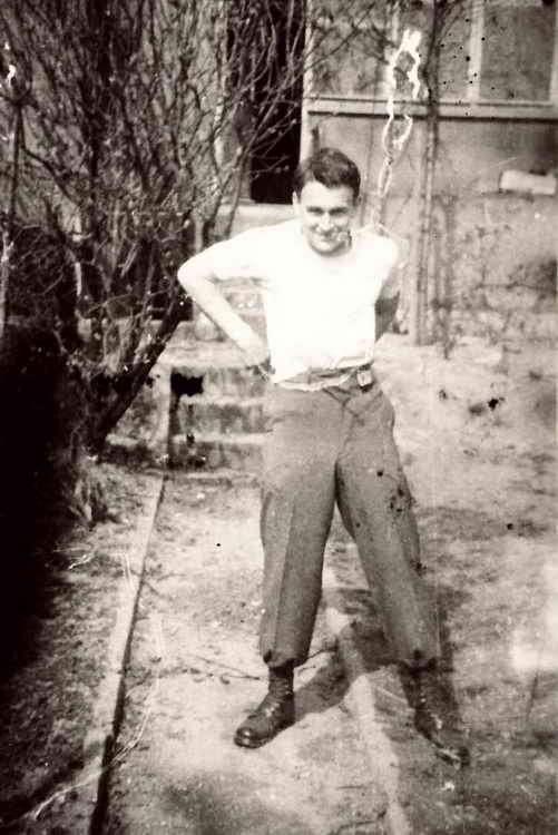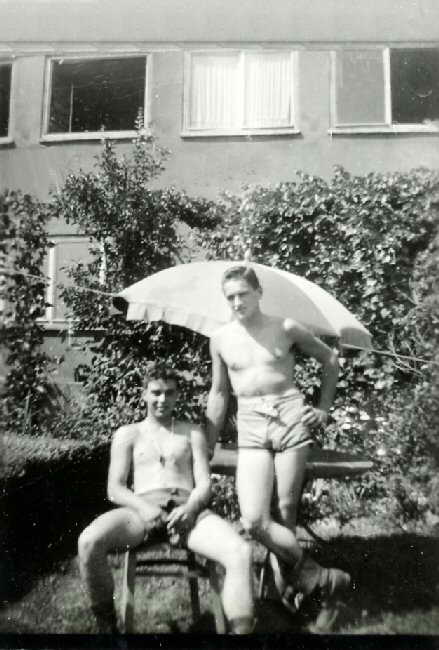 An unlabeled photo of John McCall and friends outside the Heddernheim
