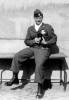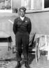 SSgt Pederson stands at parade rest in the doorway of the apartments.