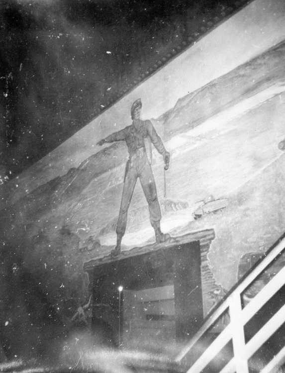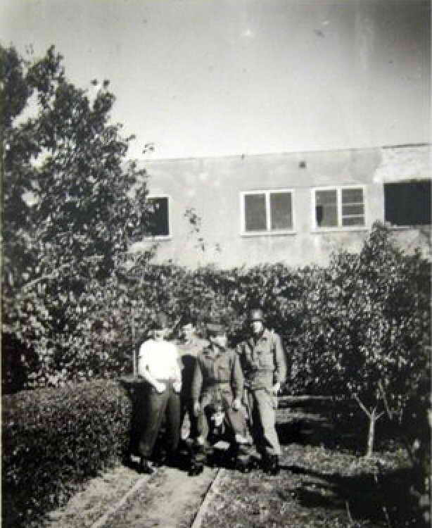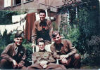 [l-r] Stach, Osburn and Brodd all of Co I, are noted on the reverse of this photo. We presume that the man with his back to the camera is the one not identified |