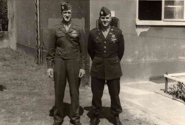 SSgt Pederson (l) stands with trooper who may be named Stephens. Both men are from Co I.