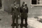 1/Sgt Leonard Funk and Lt Robert Weaver stand next to what appears