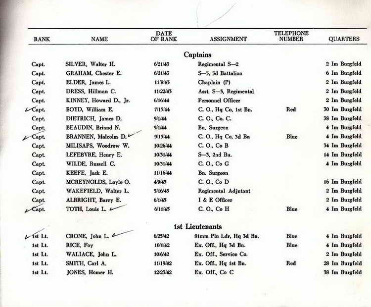 A directory listing all 508th officers,