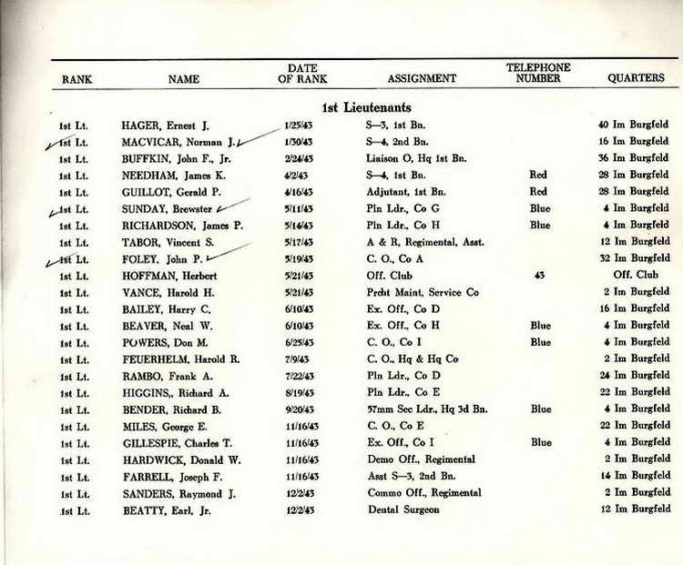 First Lieutenants (1944-45)