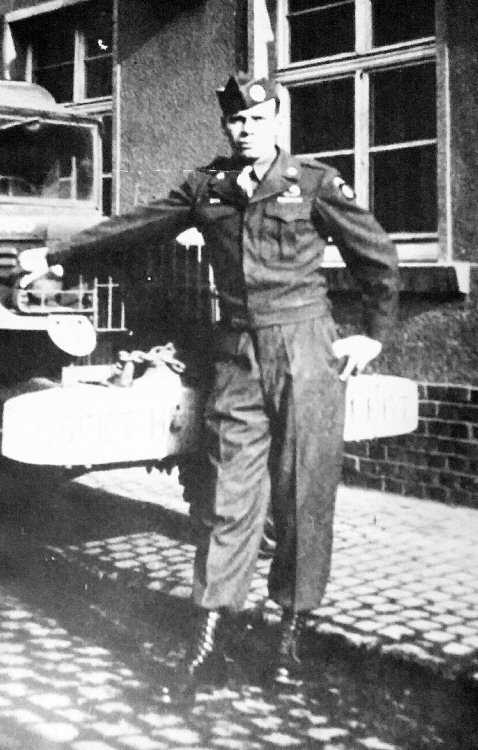 Medal in Belgium. He re-enlisted in 1945 with the rank of 1st Sgt