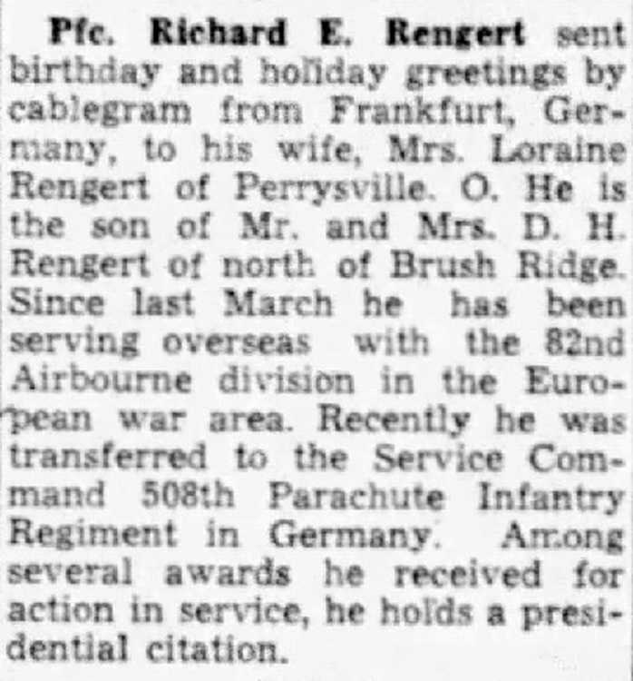 his wife, Mrs. Lorraine Rengert of Perrysville, O.