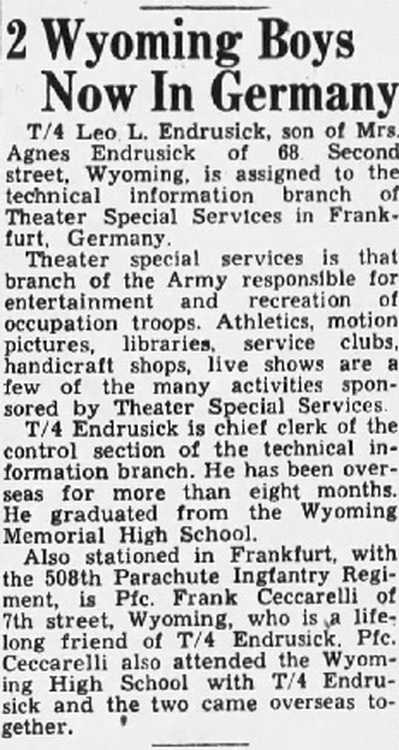 Also stationed in Frankfurt, with the 508th Parachute Infantry