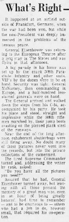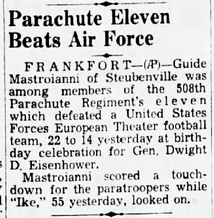 Mastroianni scored a touchdown for the paratroopers while "Ike", 55