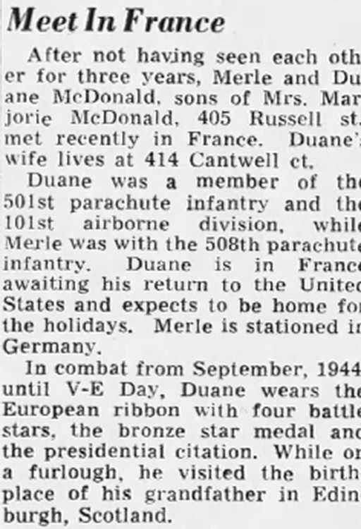 division, while Merle was with the 508th parachute