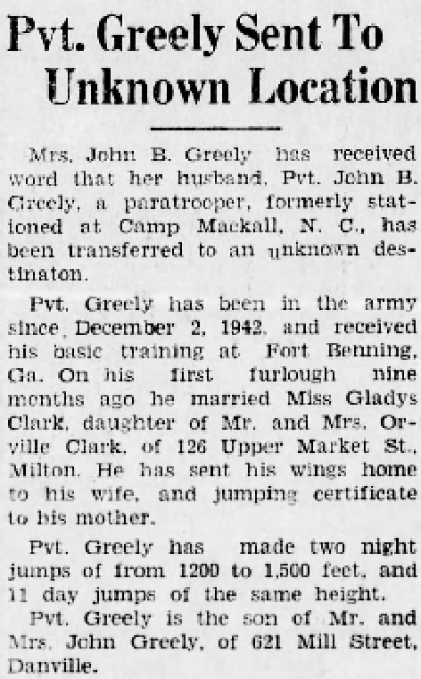 News, Danville, PA, 13 Jan 1944, Thu, Page 6] |