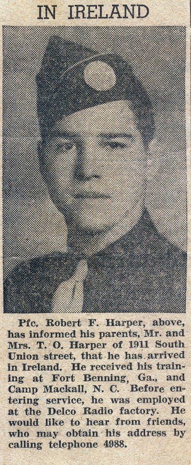 Pfc Robert F. Harper, above, has informed his parents T. O. Harper of