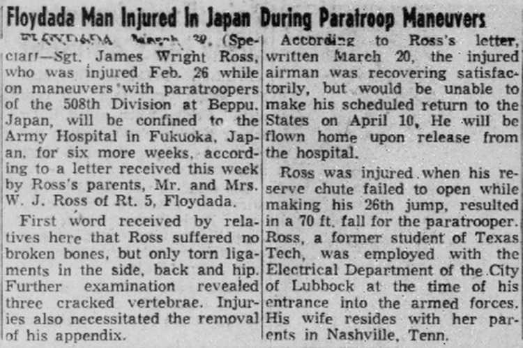 Floydada Man Injured In Japan During Paratroop Maneuvers