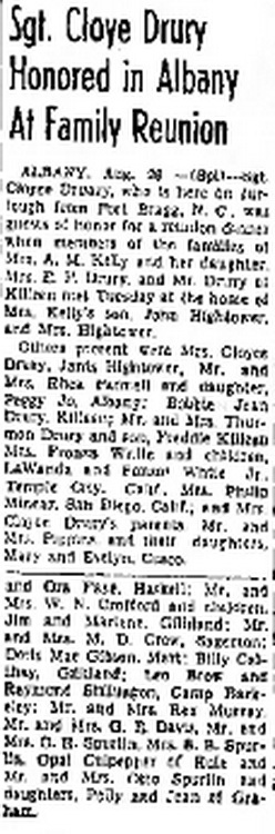 Cloyce Drury Honored in Albany At Family Reunion