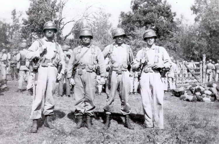 2nd Platoon, Co. D, 508th PIR on Tennessee maneuvers Lt. J. Tutweiler Francisco Garza (KIA, D-Day) A. N.. Guzman L. L. Mays J. H. Beckam F. P.Talley C. E. Erwin Flasick, | Francis M. Jirinic (KIA, June 13, '44)