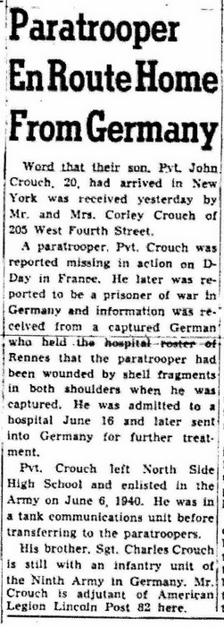 A paratrooper, Pvt. Crouch was reported missing in action on D-Day