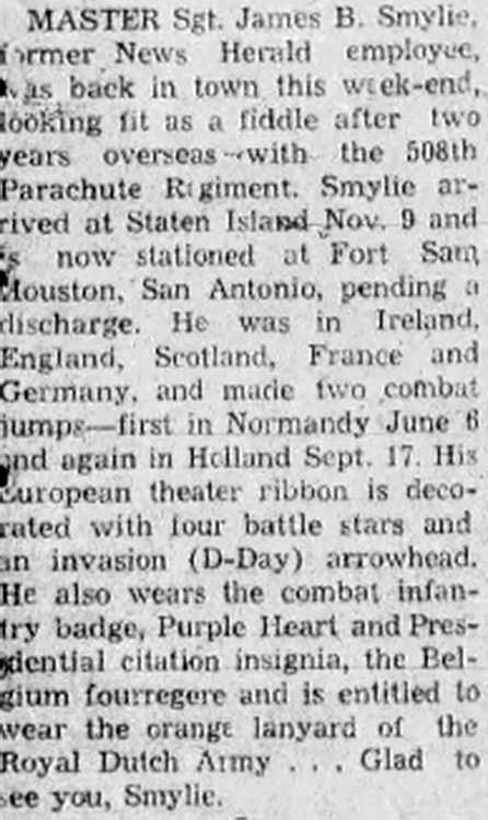 MASTER Sgt James B Smylie former News Herald employee is back m town this