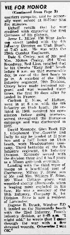 Eugene B. Druck, Winsor RD 1, landed on the Normandy beach with the