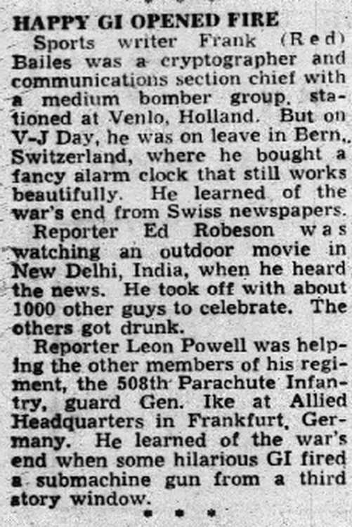 in Frankfurt, Germany. He learned of the war's end when some hilarious