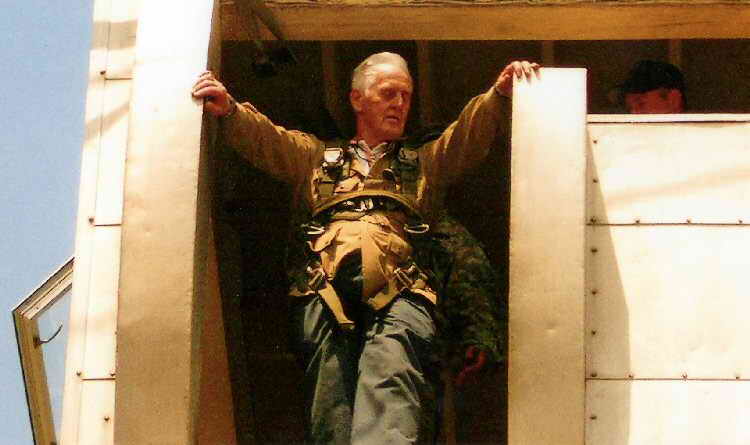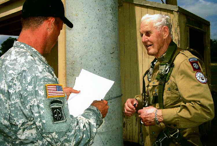 a quick laugh with the tower jumpmaster about the jump Ernie