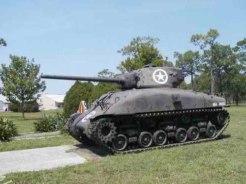 SHERMAN TANK Built by the thousands, they were a welcome sight to the G.I.'s when they were in pinch but were outgunned by the German Tiger Tank. |
