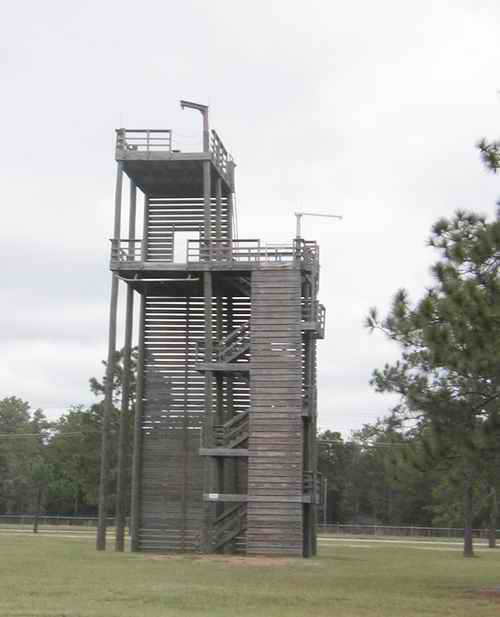 TRAINING TOWER Trainees were first introduced to free falls by dropping off wooden structures like this. |
