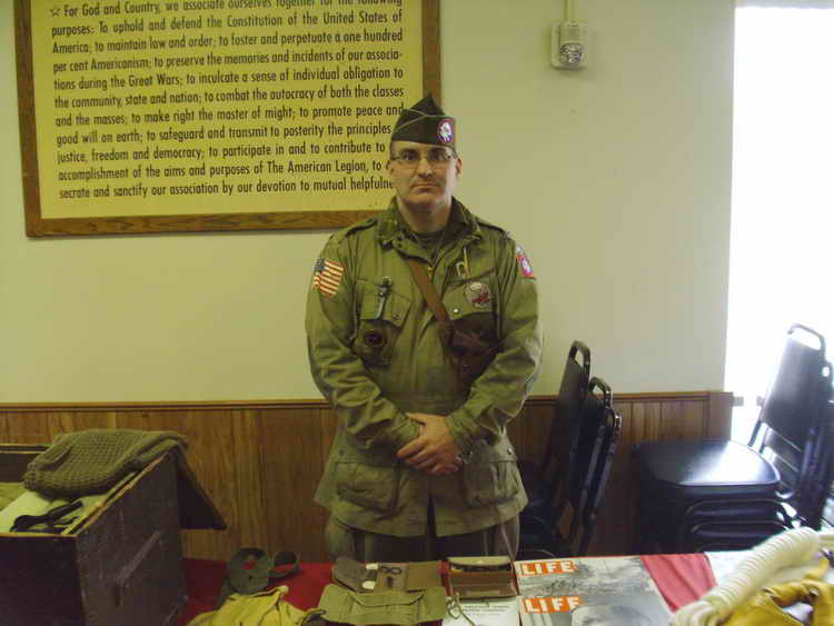 The 82nd Airborne Association wreath was placed above a memorial display for Lt, Williams including many photos of combat in Normandy from Lt. Williams' camera.