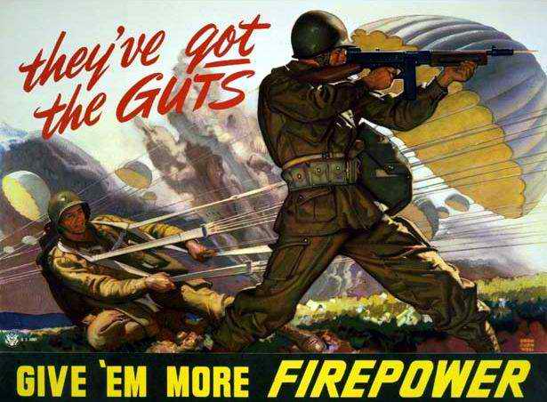 Paratroopers began to be featured on War Bond posters as they represented a new, seemingly fearless, breed of America's fighting men. |