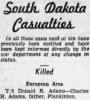 Pvt. Donald R. Adams; lather, Charles H. Adams, Plankinton.