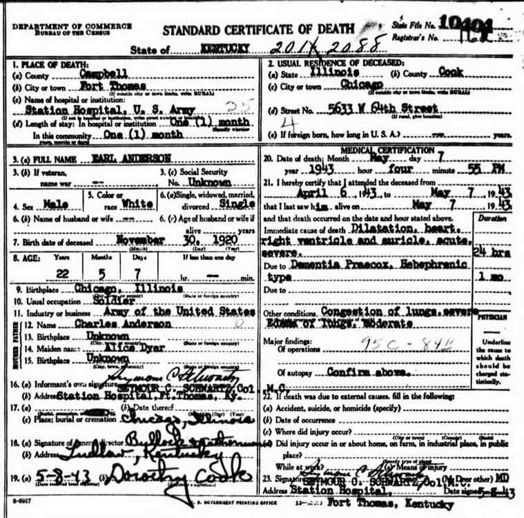 admitted to the Station Hospital, Fort Thomas, KY on 6 April 1943.