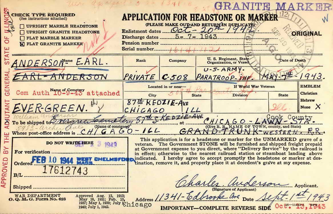 Earl enlisted in the Army at Chicago, IL on 20 October 1942.