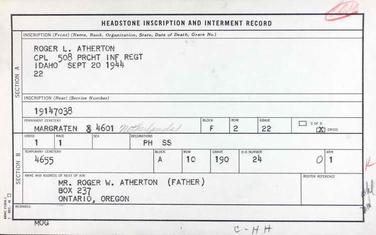 September 20, 1944 and was awarded the Silver Star and the Purple Heart |