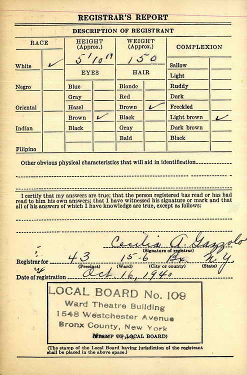 the Bronx, NY on 16 October 1940 and was inducted into the Army at Camp