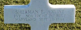 Grave marker for Pvt. Sherman E. Axline at Plot F Row 2 Grave 15 in Margraten American Cemetery, Holland.
