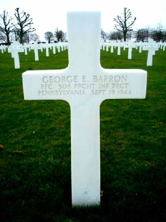 Grave marker for Pfc George E. Barron at