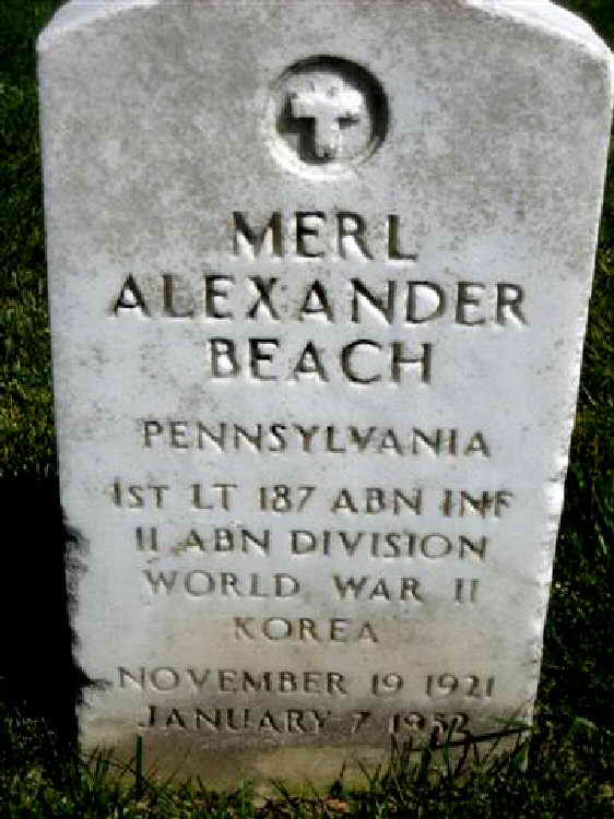 Grave marker for 1st Lt. Merl Alexander Beach at