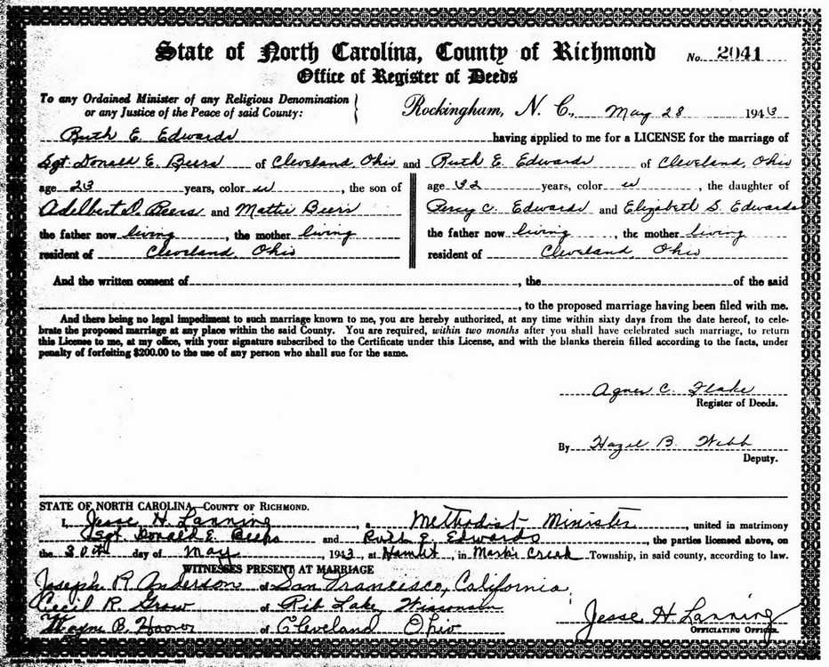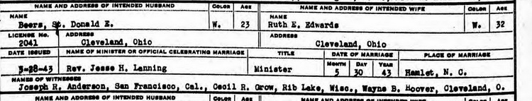28 March 1943, Ruth E. Edwards applied for a license to marry Donald E.