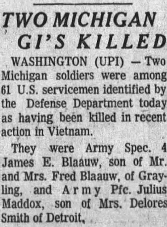 They were Army Spec. 4 James E. Blaauw, son of Mr. and Mrs. Fred Blaauw, of Grayling, and Army Pfc Julius Maddox, son