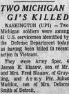 GI'S KILLED WASHINGTON (UPI) -Two Michigan soldiers were