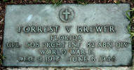 Grave marker for Cpl Forrest V. Brewer in the Garden of Whispering Pines,