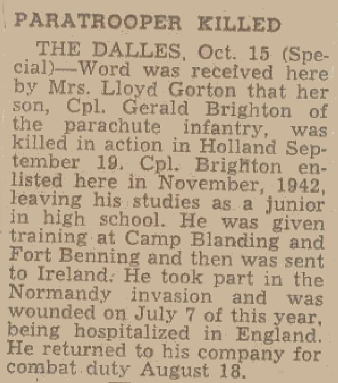 clipping regarding Pfc Brightsman's death Note that his surname is