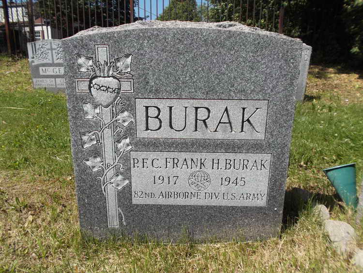 marker for Pfc Frank H. Burak in the Mount Olivet Cemetery, Bloomfield