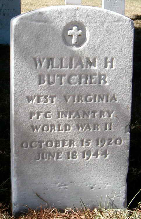 Pfc Butcher was killed in action in Normandy on June 18, 1944 and was awarded the Purple Heart.