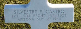 Grave marker for Pvt Silvestre P. Castro in Plot A, Row 9 Grave 176 of the