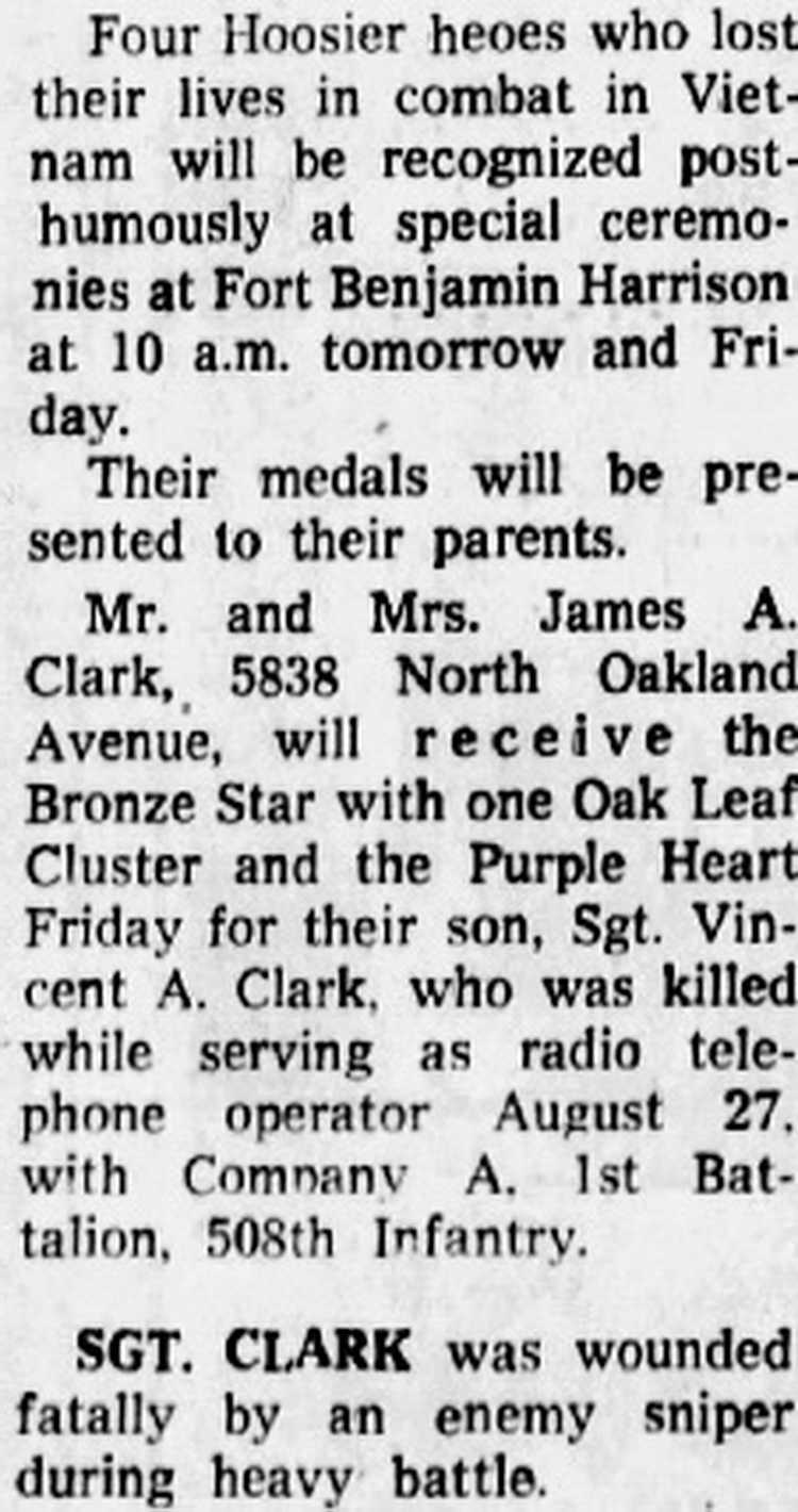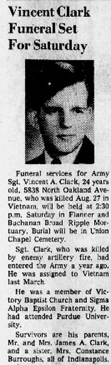 Sgt. Vincent A. Clark, who attended Purdue University, died Aug. 27