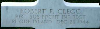 PFC Clegg was killed in action on December 26, 1944 during the Battle of The Bulge and was awarded the Purple Heart.