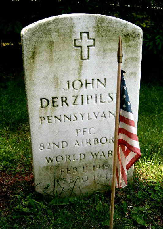 Grave marker for Pfc John Derzipilski at Section A, Site 90