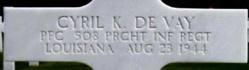 Grave marker for Pfc Cyril K. DeVay at