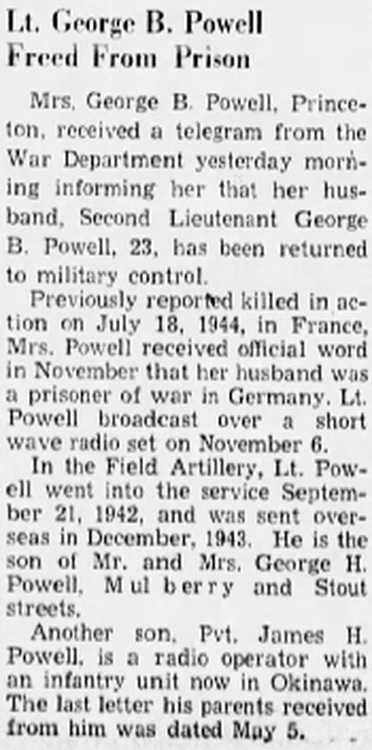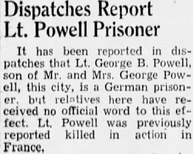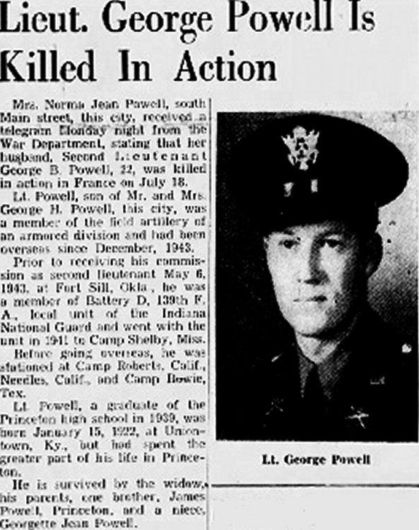 Lt. George B. Powell, of Princeton, reported killed in action July
